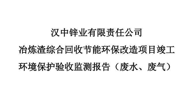 漢中鋅業(yè)有限責(zé)任公司冶煉渣綜合回收節(jié)能環(huán)保改造項(xiàng)目竣工環(huán)境保護(hù)驗(yàn)收監(jiān)測報(bào)告(廢水、廢氣)